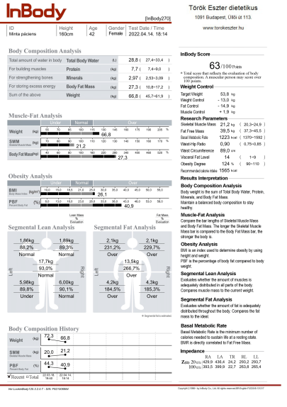 Rendelőmben InBody testösszetétel mérést is végzek, ami segít az életmódváltás nyomon követésében, hisz pontos számokban tudjuk mérni az izomtömeg és a zsírtömeg változását, de sportolók számára is hasznos információval szolgál.